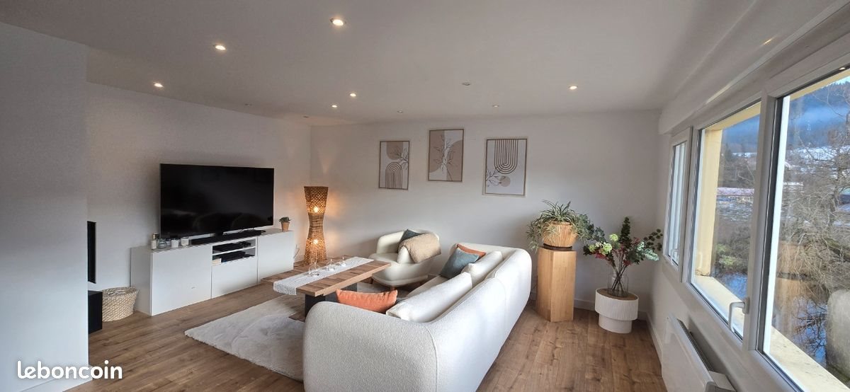 Charmant appartement T3 de 83 m², situé au 2ᵉ et dernier étage, entièrement rénové en 2017. Situé dans le bas de Villers-Le-Lac, toutes les commodités sont accessibles à pieds. Il se compose d’un grand séjour lumineux, d’une cuisine ouverte équipé, de deux chambres, d’une salle de bain et d’un Wc indépendant. Dpe : D Ges : B ✔️ Les + du logement ?Cave de rangement sur le palier ?Cuisine moderne ?2 stationnements privés ? Appartement très lumineux, vue dégagée, résidence calme. ? Grande superficie pour un T3. ? Disponible à partir du Loyer : 1200 €