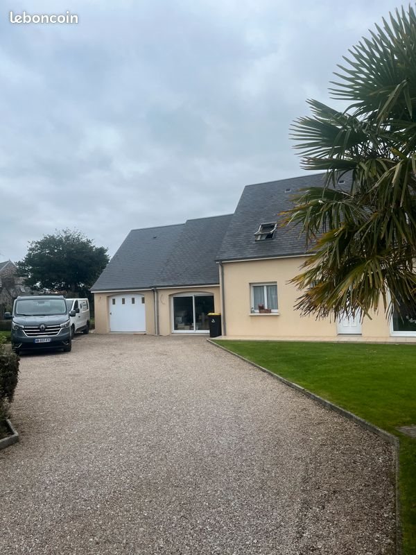 Saint Martin Le Greard - Vends maison construite en 2001, comprenant : au Rdc : 1 cuisine équipée récente, une salle salon, une chambre avec salle d'eau. 1 Wc. A l'étage : 3 chambres, salle de bains avec Wc. 2 garages. Une terrasse extérieure avec pergola. Terrain de 1495 m2. Très bon état.