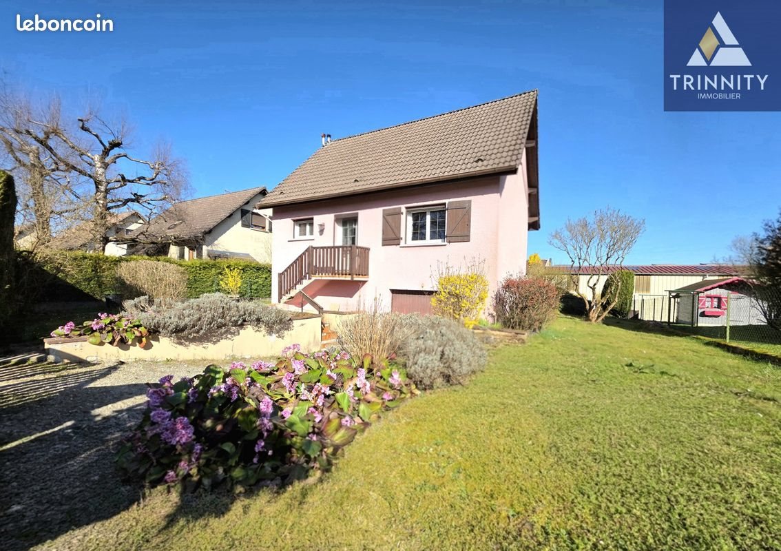 Maison 5 pièces 81 m² Maison idéalement située Axe Belfort / Mulhouse Trinnity Immobilier vous présente : Située dans un village calme et agréable, cette maison bénéficie d'un emplacement privilégié, à seulement quelques minutes des commodités, de l'autoroute A36 et de la zone commerciale de Bessoncourt. Bon rapport qualité / prix, et Rare sur le secteur ! Cette maison édifiée sur sous-sol complet vous séduira par ses volumes et son potentiel. Vous découvrirez une vaste entrée avec rangements desservant une cuisine indépendante ainsi qu'un séjour lumineux de 28 m2 ouvrant sur une spacieuse véranda de 14 m2, idéale pour profiter de la mi-saison. La véranda offre un accès direct au jardin et aux extérieurs, parfait pour les moments de détente en famille. Toujours au rez-de-chaussée, une salle d'eau avec Wc complète ce niveau. À l'étage, l'espace nuit se compose de chambres confortables ainsi que d'une salle de bains avec Wc. Au sous-sol : Vous trouverez une grande pièce aménagée avec fenêtre et chauffage, idéale pour une chambre supplémentaire, salle de jeux, bureau ou salle de sport selon vos besoins. S'ajoutent également une buanderie et un garage spacieux de 26 m2. Le tout est édifié sur une parcelle d'environ 571 m2, offrant un agréable espace extérieur. Maison fonctionnelle, bien située et offrant de nombreuses possibilités. Réuni beaucoup de critères, mais surtout une Opportunité Unique ! Rare à la vente ! Nous restons naturellement disponibles pour plus de renseignements. Surface : 81 m² Date de réalisation du diagnostic énergétique : Consommation énergie primaire : 449 kWh/m²/an Consommation énergie finale : 0 kWh/m²/an Montant estimé des dépenses annuelles d'énergie pour un usage standard : entre 2 421 € et 3 275 € sur les années 2021, 2022 et 2023 (abonnements compris). Logement à consommation énergétique excessive : classe G