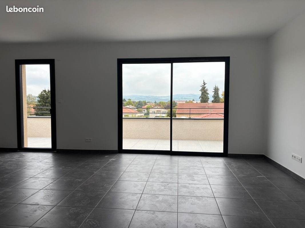 Appartement T3, Neuf, 67 m² avec Terrasse, Garage et Place De Parking Loue à Veauche, à cinq minute à pied du centre-ville, un T3 de 67 m2 + 13 m2 de terrasse, situé au 3ème et dernier étage d’une petite résidence sécurisée, en cours d’achèvement. L’Appartement est composé de : - Un séjour, - Une cuisine ouverte et aménagé, - 2 chambres avec placards aménagés, - Une salle d'eau avec douche - Un Wc indépendant. - Une belle terrasse de 13m², - Un box de stationnement équipé d'une porte motorisée, - Une place de parking privative en extérieur, Chauffage individuel au gaz. Loyer 900 €uros + 50 €uros de charges. Sérieuses références exigées. Les animaux ne sont pas souhaités. Contact uniquement par téléphone