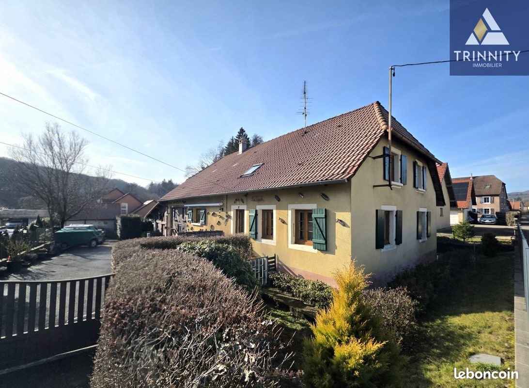 Maison 5 pièces 113 m² Trinnity Immobilier vous présente, Sur la commune d'Étueffont, venez découvrir cette maison de type ferme d'environ 112 m2 habitables, avec de nombreuses dépendances (grange et garage double). Au rez-de-chaussée, une entrée dessert une cuisine indépendante avec accès à une grange semi-aménagée, comprenant une grande salle de réception et une cuisine d'été. Vous trouverez également un séjour, une première chambre ainsi qu'une salle d'eau. Possibilité de créer une suite parentale au rez-de-chaussée. À l'étage, une mezzanine/bureau et deux grandes chambres, avec la possibilité d'aménager une salle d'eau supplémentaire selon vos besoins. En dernier niveau : un Grenier. Annexes : Grange complète comprenant une cuisine d'été, une grande salle pleine de charme (poutres apparentes, murs en pierre) et un atelier En fond de cour, un grand garage double. Rare à la vente ! Nous restons naturellement disponible pour plus d'information. Surface : 113 m² Date de réalisation du diagnostic énergétique : Consommation énergie primaire : 230 kWh/m²/an Consommation énergie finale : 0 kWh/m²/an Montant estimé des dépenses annuelles d'énergie pour un usage standard : entre 2 670 € et 3 612 € sur les années 2021, 2022 et 2023 (abonnements compris). Logement à consommation énergétique excessive : classe F