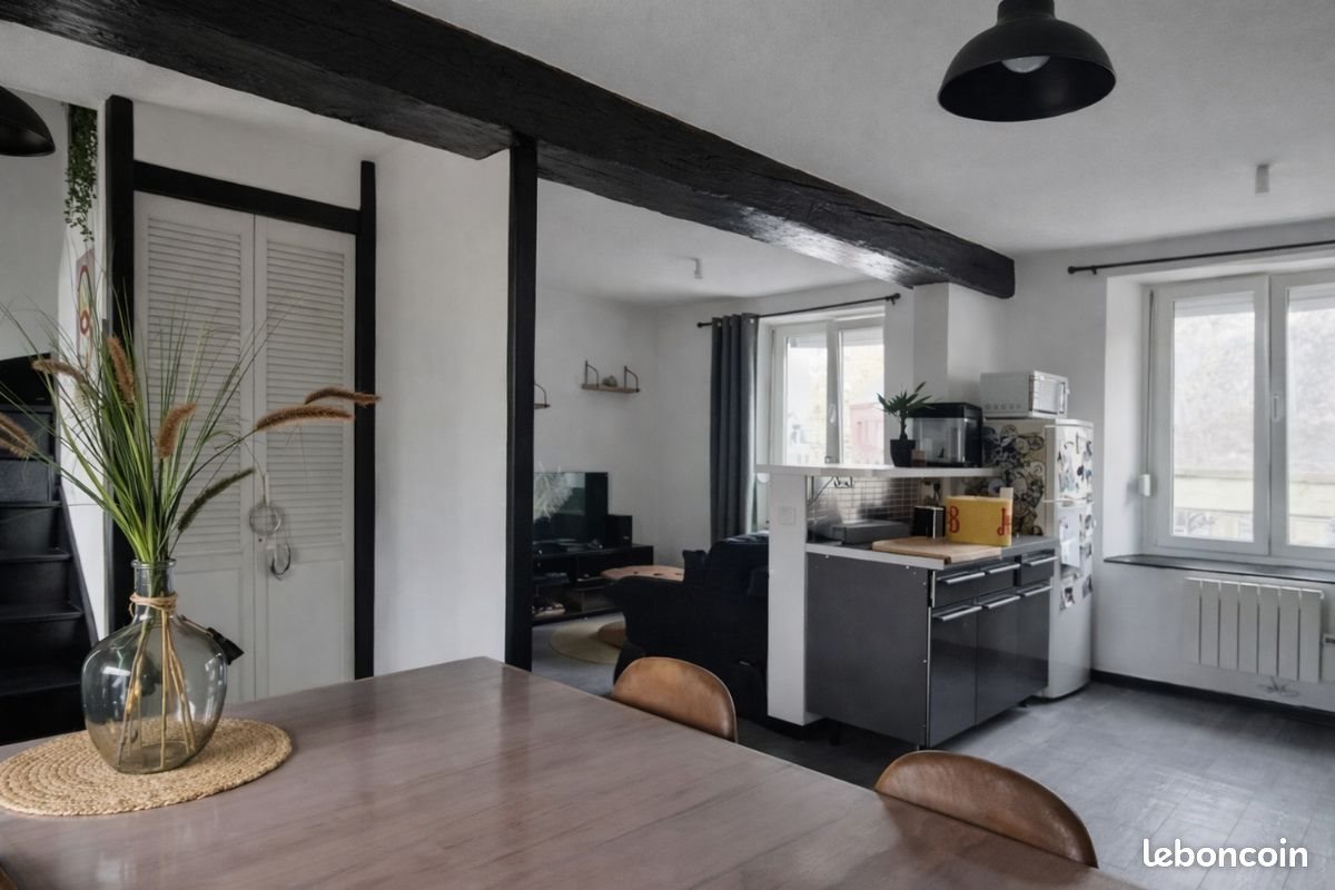Appartement T2 en duplex, 2ème et 3ème étage, au cœur de Sedan. Beau cachet avec poutres apparentes, rénové avec goût. Au 2ème étage : entrée, salle d'eau avec douche et Wc, vaste pièce de vie lumineuse de 26 m² avec cuisine équipée. Au 3ème étage : chambre de 13 m² avec espace bureau attenant, palier desservant les pièces. Chauffage électrique. Double vitrage. Stationnement facile dans la rue. Loyer : 400 € / mois Charges : 50 € / mois (eau froide, ordures ménagères, entretien parties communes) Dépôt de garantie : 400 € Disponible à partir du 1er mars 2026.