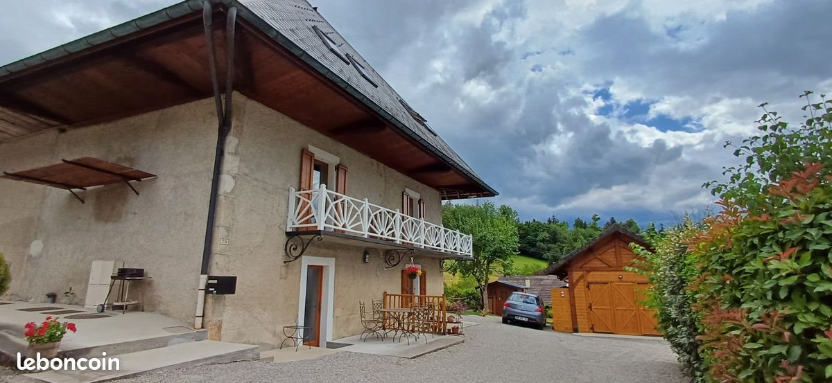 Location appartement meublé dans maison mitoyenne à 10 km d'Annecy, entre Quintal et Viuz la Chiesaz. Sur 3 niveaux, 60m2, intérieur entièrement rénové en 2017. Rez de chaussé: cuisine 1er étage : salon, 2ème étage : 2 chambres, salle d’eau, Wc Chauffage: câble électrique dans la cuisine chauffages électriques en céramique dans les autres pièces. Abri de jardin de 3,4m2. Terrasse. Deux places de parking. Cadre champêtre et calme Disponible à partir du samedi 10 janvier 2026. Loyer : 1045€/ mois + charges (provision: eau : 15€/ mois) Prévoir électricité en plus. Dpe : D énergie, B :Ges