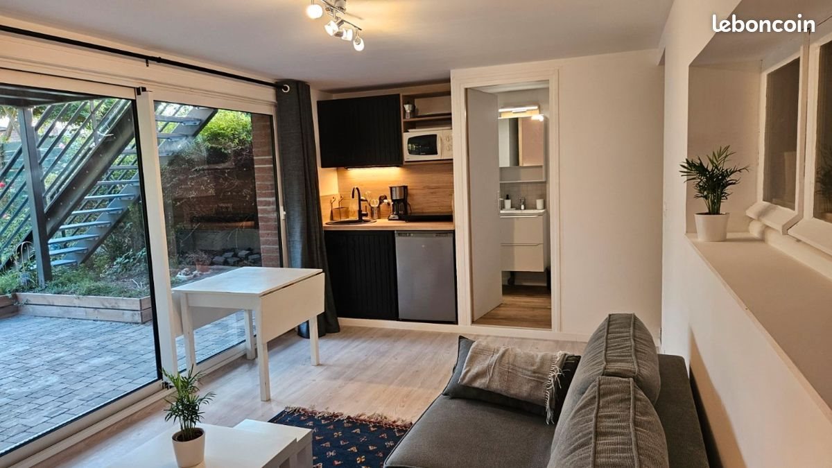 Loué studio meublé avec goût. Neuf. 21M2 en rez-de-chaussée de jardin de notre habitation de type bel étage. Quartier résidentiel sympa de Saint André lez Lille. Stationnement gratuit facile dans la rue. Possibilité stationnement vélo ou trotinette dans notre garage attenant au studio. Citadelle de Lille a 10minutes en velo, 15min du centre où de la gare de Lille. Ligne de bus 50 a 2minutes de la maison ou L1 a St André Gare. Belle vue jardin,bonne orientation sud. Grande baie vitrée 3m. Pièce de vie 18m2 avec coin kitchenette. Salle de douche/wc 3m2. Meublé avec goût : canapé lit, bureau, penderie, table chaises, micro-ondes, tv, four, box internet, chauffage électrique, etc... Le prix comprend toutes les charges (eau, chauffage, électricité, internet 5G). Vous n'avez aucun autre abonnement a prendre. Loyer Cc 600€. Bail mobilité dans un premier temps (durée 0 a 10mois) transformable en bail meublé classique. Le profil du locataire nous importe car nous vivons au-dessus, et inversement. Visites samedi 21/03 matin 9h30/11h Appart libre au 01/04. Photos sur demande. Garant exigé si étudiant. Contact via messagerie le boncoin svp