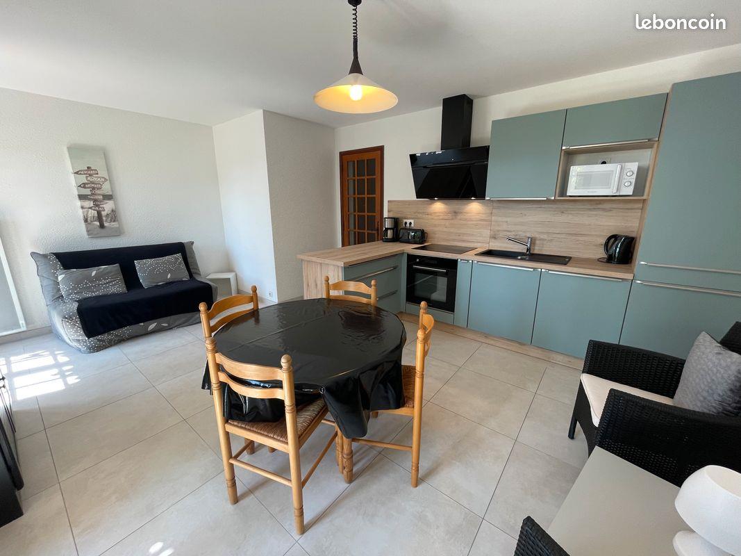 Du 1er octobre à avril mai 2026. (Pas de location à l'année) Loue appartement meublé 2 pièces de type T2 superficie 55m², tout confort, refait à neuf, calme et très lumineux, vue mer et panoramique sur la grande plage de Saint Georges de Didonne et à 200 m du centre-ville. Ce logement comprend : un grand séjour salle à manger avec cuisine américaine toute équipée (lave-linge, lave-vaisselle, four, four micro-ondes, frigo, congélateur...), une chambre indépendante avec lit 140 et armoire dressing Kz, en complément 1 couchage Bz deux personnes dans le salon, une salle d'eau douche et Wc et balcon terrasse face à la plage équipé d'un salon de jardin. Wifi inclus. Conviendrait à une ou deux personnes. Contact préalable par téléphone si possible
