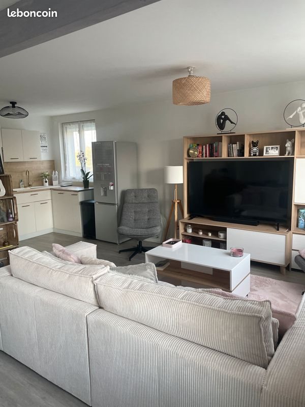 A Malville, entre Nantes et Saint-Nazaire, situé à 1km de la voie rapide, au calme, à la campagne, une maison mitoyenne lumineuse, exposition sud comprenant au Rdc une grande pièce de vie ouverte sur une cuisine équipée, un Wc, un cellier. A l'étage 2 chambres dont une avec un dressing, une salle d'eau avec Wc. A l'extérieur, une terrasse de 19 m2, un garage à vélo, un espace jardin commun, 1 place de parking privrée. Loyer 780€ + 30€ de charges pour l'entretien de la micro-station, du jardin et l'éclairage du parking et des parties communes. Libre début avril, contact uniquement par téléphone.