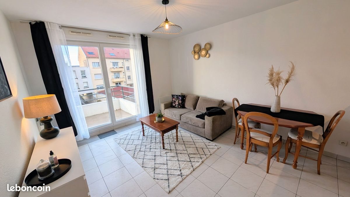 Bonjour, Je vous propose à la location ce T2 meublé agréable à vivre, avec place de parking, situé dans une résidence récente (2007) sécurisée. Il est situé à Talange, au 159 Rue de Metz, dans un batiment en seconde ligne, en retrait de la rue. Talangee est à 15 km de Metz et de Thionville et 32 km de la frontière luxembourgeoise. L'appartement est lumineux, au second et dernier étage, orienté ouest. L’Appartement, lumineux, est au 2ᵉ et dernier étage, orienté ouest. Vous disposerez de 35 m² bien agencés et d’une terrasse de 6 m². Il vient d’être rénové et entièrement meublé. La pièce principale d’environ 20 m2 comprend une cuisine équipée ouverte sur le séjour et donne sur une terrasse avec vue dégagée (photos 1, 2 ). La chambre (photo 3) dispose d’un placard. La cuisine est équipée d’une plaque 4 feux, d’un grand réfrigérateur et d’un congélateur, d’un four encastré et d’un lave-linge (photo 4 ). La salle de bain comporte une baignoire avec colonne de douche (photo5). L'appartement dispose de 2 placards. Les radiateurs électriques sont à inertie sèche, le Dpe est classé D (décembre 2024). Le loyer est de 675 €, plus 45€ de provisions sur charges, comprenant notemment l’eau et l’entretien des parties communes et des espaces verts. Un bail meublé sera établi. Le dépôt de garantie (encaissé) est, en location meublée, de deux mois de loyer hors charges soit 1350 €. Location de particulier à particulier, pas de frais d'agence. Pour les questions supplémentaires, je répondrai avec plaisir à vos messages. L’Appartement est disponible immédiatement. La garantie Visale est demandée à défaut, un garant bancaire ou une société de cautionnement (Cautioneo, Garantme, etc.) est nécessaire.