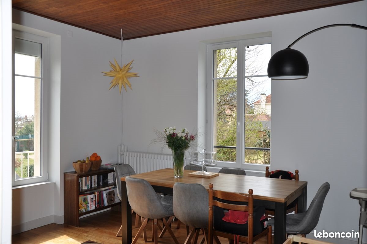 Maison 5 pièces 82 m² Maison d'habitation élevée sur sous-sol comprenant : entrée, pièce de séjour, cuisine, trois chambres, bureau, salle d'eau avec douche à l'italienne, Wc séparés. Sous-Sol total composée d'un espace buanderie, d'une cave et de deux garages. Jardin d'environ 1000 m2. Chauffage et production d'eau chaude par chaudière au gaz récente. Fenêtres Pvc double vitrage, volets roulants électriques en façade. Disponible au 30 juin 2021. Surface : 82 m² Consommation énergie primaire : 144 kWh/m²/an Consommation énergie finale : Non communiqué