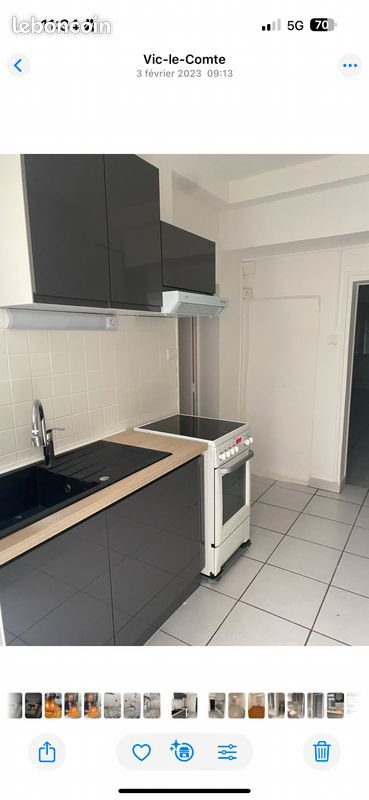 A louer T2 à Vic-le-Comte au rez-de-chaussée d’un immeuble de deux étages, il contient une chambre, salon, salle à manger, cuisine, semi équipée, une salle de bain, un Wc, une terrasse de 18 m² Et une loggia sur le pas de la porte. De quoi pouvoir ranger des vélos contacte uniquement par téléphone oyer 550€+15€ de charge