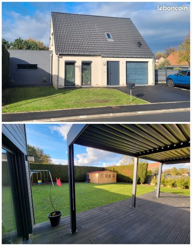 Individuelle de 130 m² à Somain – Prestations de qualité La maison est située dans un secteur résidentiel calme à Somain. Vous pouvez bénéficier d'une alliance entre sérénité du secteur excentré et proximité des services de la ville. C'est une superbe maison individuelle, bâtie sur une parcelle de 600 m², qui allie confort moderne et volumes généreux. ✨ Les points forts au Rez-de-Chaussée : Une fois passée l'entrée, vous serez séduit par la luminosité de l'espace de vie. • Vaste séjour/salle à manger de 45 m² avec poêle à pellets (2023). • Cuisine Cuisinella neuve, moderne et entièrement équipée. • Suite parentale d'exception (40 m²) comprenant : un espace nuit confortable, un dressing indépendant et un espace détente avec douche et jacuzzi. • Garage carrelé de 18 m² et stationnement privatif jusqu'à 3 véhicules en façade. ? À l'Étage : Un palier dessert l'espace nuit composé de : • 3 belles chambres lumineuses ( 10,8 / 11,9 et 17,4 m2) • Une salle de bain complète équipée d'une douche et d'une baignoire. ? Extérieurs et Équipements : • Terrasse de 40 m² abritée par une double pergola bioclimatique. • Beau jardin engazonné et entièrement clôturé. • Menuiseries double vitrage avec volets roulants électriques sur l'intégralité du bien. • Chauffage performant via poêle à pellets récent et radiateurs électriques à faible consommation pour la suite parentale. Vente directe de particulier à particulier, sans frais d'agence.