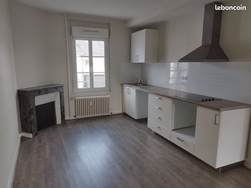 Appartement de type 3 comprenant au Rdc une entrée donnant dans la buanderie (aménagée), un escalier desservant le 1er étage avec une pièce principale dont le coin cuisine équipée et aménagée, deux chambres, une salle de bains avec Wc. Une cour à l’avant du logement, un grand garage fermé, un local technique « chaufferie», un jardin au fond du hangar. Surface : 85 m2 Chauffage collectif au gaz de ville, inclus dans les charges, Electricité à la charge du locataire Loyer : 535,00 € Provisions pour charges : 160 € (eau, chauffage, Tom et entretien chaudière). Contact et visite aux heures de bureau du lundi au vendredi Pas d honoraires, frais de dossier de 110€ Ttc.