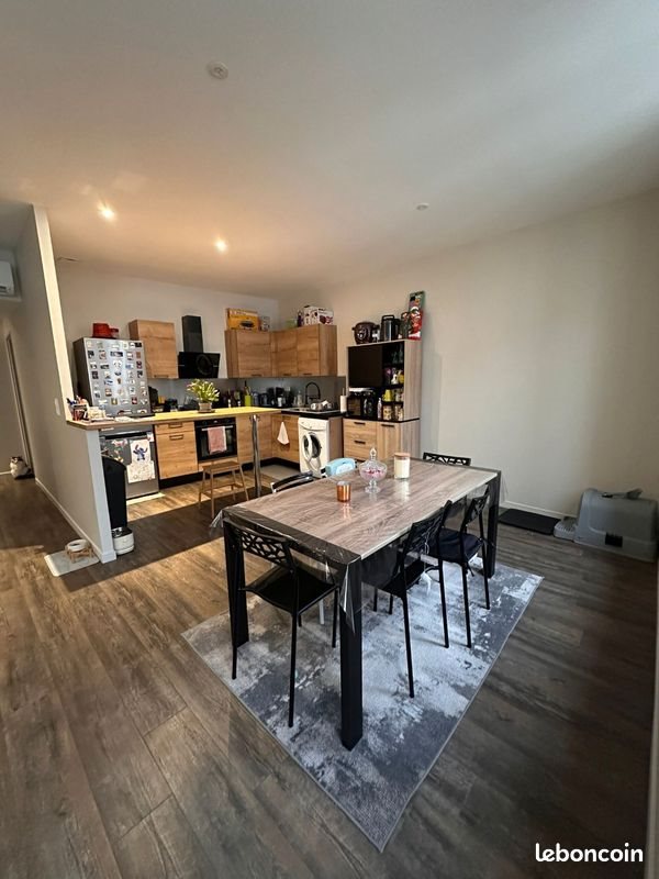Très bel appartement entièrement refait à neuf dans bel immeuble ancien. Situé en plein centre de Montbazon, dans la rue piétonne en face du cinéma. Parking aisé à proximité. L appartement se compose d une grande pièce à vivre ouverte d une surface de 43m2, très lumineuse avec une belle hauteur sous plafond. La cuisine est équipée et aménagée (four, plaque, hotte et lave vaisselle). L appartement comporte 3 chambres toutes équipées de placards, de 2 SdB et 2 Wc. L appartement est entièrement climatisé avec une pompe à chaleur (air chaud et air froid). Visiophone. Plus de photos sur demande. Je suis un particulier dc pas de frais d agence. Disponible début janvier. N hésitez pas à me pour toute question complémentaire ou organiser des visites.