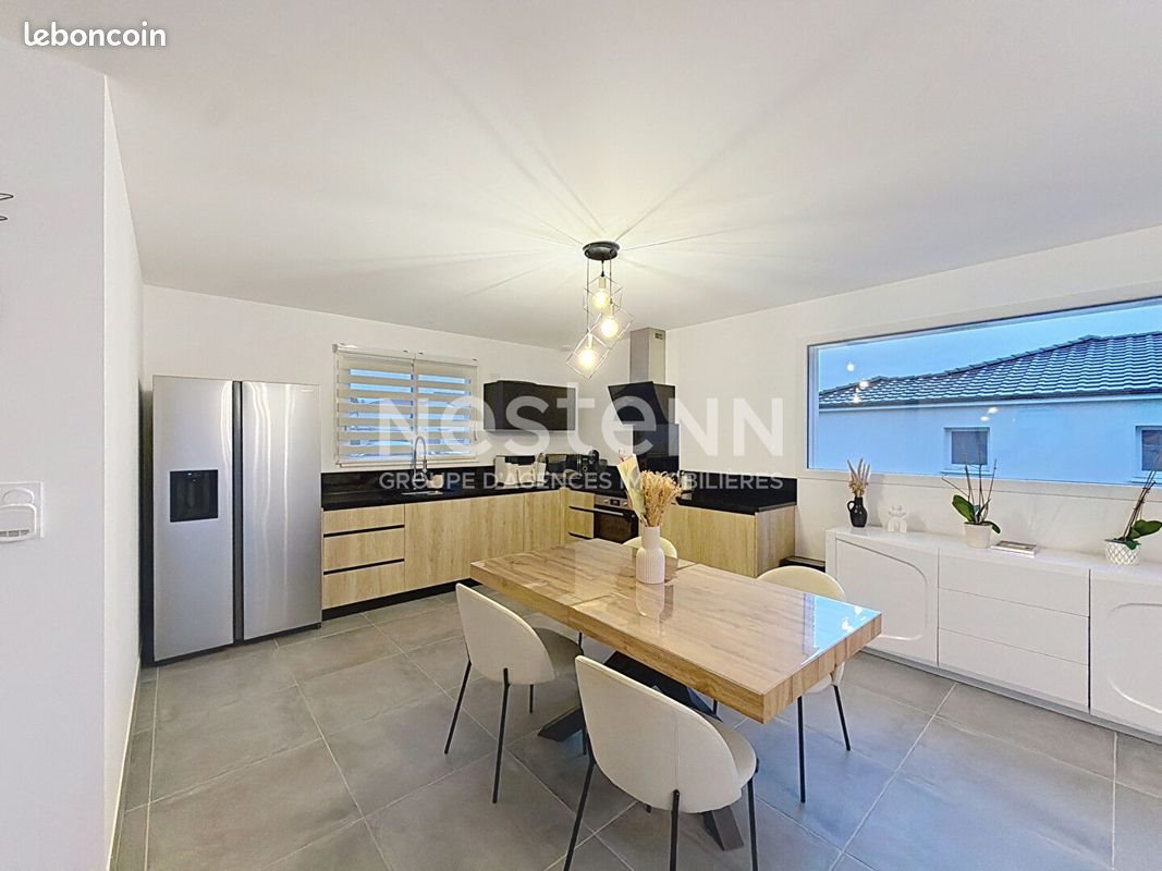 Maison 5 pièces 116 m² Maison récente 5 pièces, idéalement située sur la commune de Panazol, dans un environnement calme et recherché. D'une superficie de 115,51 m², ce bien offre un cadre de vie moderne et confortable, parfaitement adapté à une vie de famille. Construite en 2023, la maison propose des prestations actuelles et soignées. Elle se compose d'une belle pièce de vie lumineuse avec salon et cuisine ouverte, ainsi que d'un espace nuit bien pensé, avec des chambres organisées de manière fonctionnelle pour garantir confort et tranquillité. Côté stationnement, vous bénéficierez d'un double garage ainsi que d'un espace extérieur permettant de garer deux véhicules supplémentaires. À l'extérieur, une agréable terrasse ainsi qu'un jardin clôturé viennent compléter ce bien, offrant un espace idéal pour profiter des beaux jours en toute sérénité. Une maison moderne, fonctionnelle et parfaitement située, idéale pour une famille en quête de confort et de tranquillité. Un bien rare sur le marché locatif, alliant prestations récentes et qualité de vie. À visiter sans tarder ! Surface : 116 m² Date de réalisation du diagnostic énergétique : Consommation énergie primaire : 60 kWh/m²/an Consommation énergie finale : Non communiqué Montant estimé des dépenses annuelles d'énergie pour un usage standard : entre 499 € et 675 € par an. Prix moyens des énergies indexés sur l'année Non communiqué (abonnements compris)