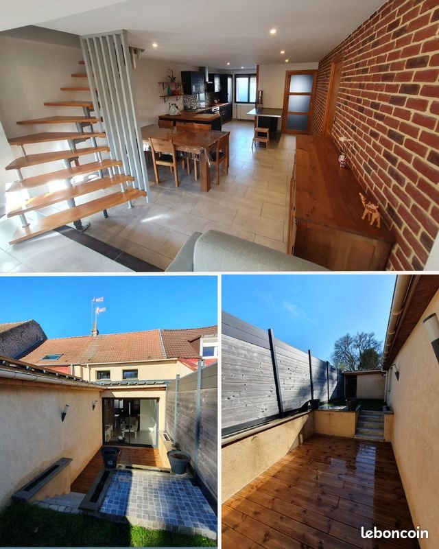 À vendre – Maison 105 m² à Somain – 165 000 € (sans frais d’agence) Idéalement située à proximité du centre-ville de Somain, dans une rue calme et agréable, cette maison de 105 m² offre un cadre de vie confortable et fonctionnel. Stationnement facile dans la rue ou sur le parking gratuit situé juste en face de la maison. Au rez-de-chaussée, vous découvrirez : Une entrée accueillante Une cuisine équipée Une salle à manger Un salon lumineux Une buanderie pratique Une salle de douche Une pièce jacuzzi attenante à la salle de douche, véritable espace bien-être à domicile Au sous-sol, une cave Au premier étage, un palier dessert deux belles chambres (dont une servant de bureau actuellement) Au deuxième étage, les combles sont aménagés et offrent un bel espace supplémentaire pouvant faire office de troisième chambre, bureau ou salle de loisirs selon vos besoins. À l’extérieur, vous profiterez d’une terrasse agréable et d’un jardinet, idéal pour les beaux jours. Un petit cabanon au fond du jardin complète ce bien. Maison fonctionnelle, bien située et offrant de beaux volumes, idéale pour une famille ou un premier achat. Prix de vente : 165 000 € N'hésitez pas à nous pour tout renseignement complémentaire !