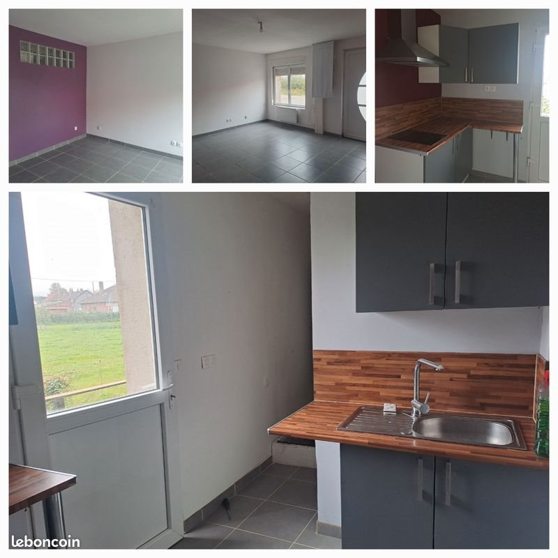 A louer maison 1 pièce de vie salon salle à manger 1 salle de bain douche et wc 1 cuisine avec plaque vitro 1 terasse pas de terrain A l'étage : deux belles chambres 1 garage attenant