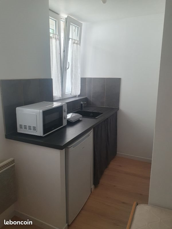 Loue pour personne sérieuse petit studio calme au 1er étage d'un immeuble sécurisé au 19, rue St-Jean à Laon. Il est situé à 10 min à pieds des écoles du plateau, et à proximité immédiate des épiceries, restaurants, bus, etc. Le logement est composé d'une pièce principale avec coin kitchenette, un espace de travail, un espace couchage avec un lit 1 personne, ainsi qu'une salle de bain avec Wc. Loué meublé, il dispose d'un petit frigo, micro-onde, plaque induction, bureau avec chaise, télé, rangements, etc. Compteurs électrique et eau indépendants à votre charge. L'appartement est disponible dès maintenant, il est en très bon état.