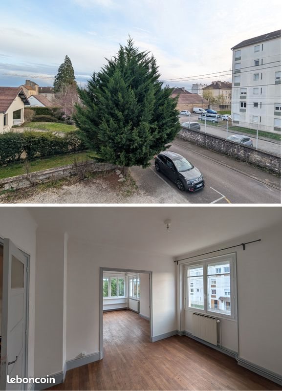 Loue T3 proche du centre ville de Dole dans un petit immeuble de 3 logements. Les caractéristiques du logement : - 80 m² - salon / séjour de 30m² - deux chambres de 12 et 15 m² - cuisine semi équipée de 11m² (four et plaques électriques) - classe énergie E avant isolation de la toiture et mise en place d'une Vmc (donc sans doute un D actuel) - une cave complète le bien (12m²) Le loyer est de 650 euros charches comprises. Le chauffage est individuel gaz. Une place de parking disponible au pied de l'immeuble. Possibilité de louer un garage en plus Pas de frais d'agence. Dépôt de garantie de 600 euros.. L'appartement est libre et des visites pssibles sur demande. N'hésitez pas à m'écrire, une présentation est la bienvenue. Merci !