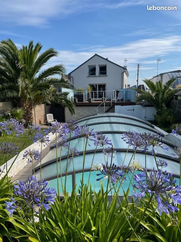 Propriété avec local commercial de 68m2 avec sanitaires et cuisine ouverte et dépendances au centre de Tregastel. Exploitable en restaurant ou tout autre commerce ou à transformer en appartement. A l'étage habitation principale avec 5 chambres, 2 wc, buanderie, grenier, une salle d'eau, un grand séjour avec cuisine ouverte donnant sur une terrasse bois et un jardin clos avec piscine couverte et chauffée de 8x4m. Terrain de 581m2.