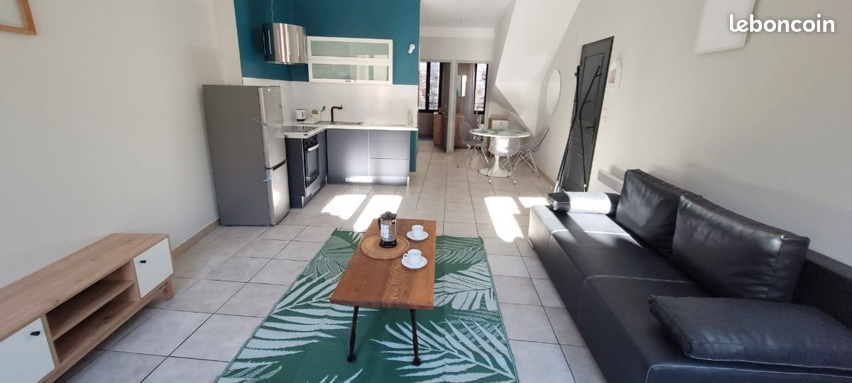 Appartement meublé intra-muros 53m2 Salon séjour avec cuisine ouverte, salle d'eau, 2 chambres