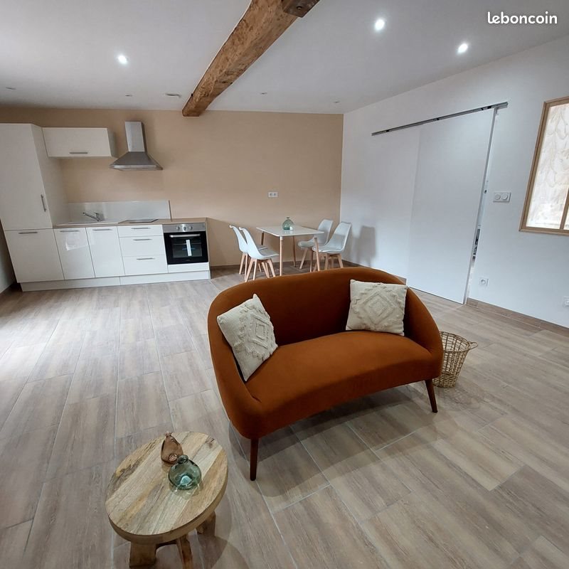 Dans un bâtiment de 3 logements, je propose cet appartement de 46 m2 entièrement rénové en 2024. Il est composé de : - 1 cuisine équipée (four, plaque, hotte) ouverte sur le salon - 1 chambre - 1 salle de bain avec douche italienne et wc Le logement possède un petit extérieur permettant d'installer un petit salon de jardin et de 2 places de parking dans une cour commune. L'appartement est disponible au 15 février. 1 mois de caution sera demandé. Je recherche des personnes sérieuses et soigneuses.