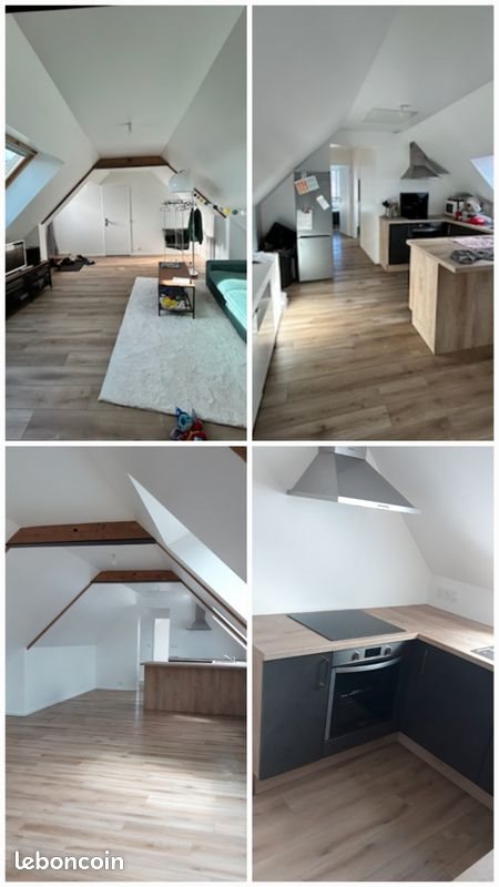 Je réponds aux demandes sérieuses avec présentation (je ne réponds plus aux demandes "est-ce que c'est disponible ") Annonce en ligne donc disponible. Merci de bien lire l'annonce Appartement à louer centre de Lamballe (proche gare) Disponible entre le 1er et le 15 avril (à déterminer) Appartement sous combles lumineux, entièrement rénové et isolé, situé au 2ème étage sans ascenseur dans petite copropriété de 5 logements (entrée indépendante) 50m² loi carrez mais 90m² au sol - Séjour/cuisine aménagée et équipée (four plaque et hotte) - 1 belle chambre - salle d'eau/WC - 1 grand placard d'entrée - chauffage électrique avec radiateurs à inertie Dalle béton isolée et recouverte de parquet dur toute la surface de l'appartement. - Parking privé et local à vélos partagé Loyer 600€ mensuel et caution de 600€ Pas de frais de copropriété ni de frais d'agence Pour prévoir une visite, il vous sera demandé : - contrat de travail en Cdi + 3 derniers bulletins de salaire - 2 derniers avis d'imposition - justificatif de domicile actuel - garant si nécessaire (mêmes documents