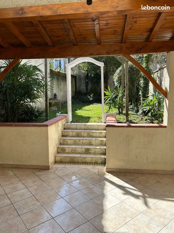 À louer centre ville de Fleurance, Maison de rue avec jardin composée d’une entrée desservant le salon et la cuisine s’ouvrant sur une terrasse couverte accédant au jardin. A l’étage un palier avec penderie dessert les 2 chambres et la salle de bain.