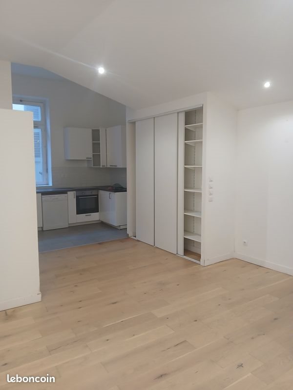 Appartement non meublé situé proche place aux herbes de Mâcon. Il est au 1er étage. L'accès se fait par un escalier commun à un immeuble composé de 3 étages. Il se compose : - d'une cuisine équipée ouverte sur le salon avec plaque induction, four et lave vaisselle - de 2 chambres avec chacune un placard - d'une salle bain avec un Wc, une douche et d'un meuble vasque avec meuble miroir haute Le chauffage est assuré par des radiateurs électriques programmables. L'eau chaude est produite par un chauffe-eau électrique classé B.