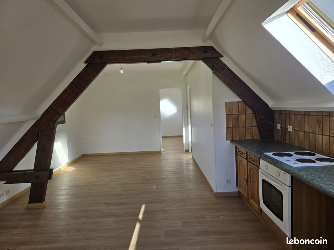 Appartement à l'étage d'une maison indépendante, situé à seulement 300m du village tous commerces, dans une propriété calme et verdoyante. D'une surface de 50m2 au sol ( 38m2 habitables ). Comprenant : Pièce à vivre avec coin cuisine aménagé et équipé, salle de bain avec wc et une chambre. Il dispose d'un coin jardin non clôturé, idéal pour se détendre et profiter du plein air. Un cabanon de jardin et deux places de parking complètent cette location refaite à neuf. Loyer : 490 €, charges courantes 50 € comprenant l'entretien du jardin, l'entretien de la chaudière et les taxes d'ordures ménagères. Eau et l'électricité en provisions 100 €, relevées par sous-compteur, avec régularisation annuelle. Chauffage individuel au fioul (à la charge du locataire).