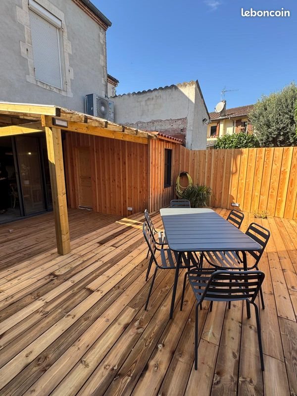 A louer sur Agen (47000) Située dans le centre-ville d'AGEN Quartier Palissy, proche de toutes commodités, et établissements scolaires, cette maison de ville de type T4 est entièrement rénovée, meublée et équipée et dispose d'une grande terrasse ensoleillée. La rénovation a été réalisée avec des matériaux de qualité et une décoration soignée. Présentant une surface habitable d'environ 88 m2, elle comprend : - au rez-de-chaussée : un séjour, une cuisine équipée séparée, une terrasse, une buanderie, un Wc. - au 1er étage : 2 chambres spacieuses, 1 salle d'eau. - au 2ème étage : 1 suite parentale avec salle de bains et Wc. Possibilité de garage dans la même rue selon les besoins. Chauffage pompe à chaleur : climatisation réversible. Libre immédiatement Loyer Hors Charges : 1200€ Hc par mois Provision sur charges : 12€ par mois pour la taxe des ordures ménagères Dépôt de garantie : 2400€ ( soit 2 mois de loyers) Honoraires : 850€ Ttc ( dont 300€ pour les état des lieux)