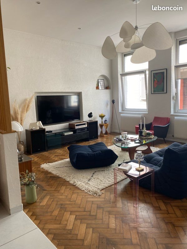 Charmant appartement, type loft, de 82 m2 dans une petite copropriété de 4 lots, situé dans un quartier paisible de Schiltigheim. Proche de commerces (boulangerie, supérette), écoles, et transport en commun. A 10 min en vélo du centre ville de Strasbourg. - Superficie : 82m² - Chambres : 2 - Salle de bain : 1 (avec Wc), baignoire/douche - Cuisine : Équipée, ouverte sur le salon - 1 cave et 1 garage + une remise Disponibilité : À partir du 20 mars Loyer : 1200 euros, charges comprises Pour plus d'informations ou pour planifier une visite, veuillez me par e-mail.