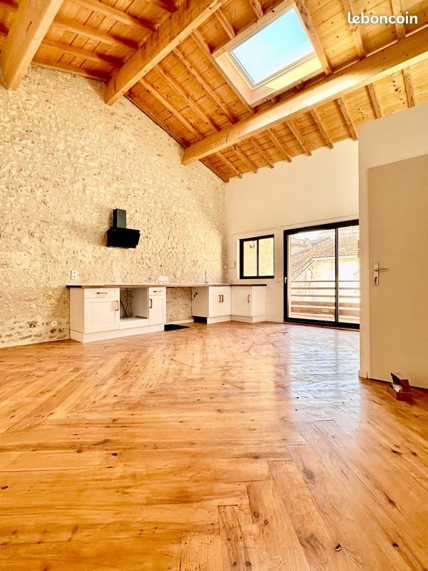 Bien situé au cœur du centre-ville de Jarnac, ce loft de 70 m² avec terrasse de 12m2, entièrement rénové en 2024, offre de beaux volumes et des prestations modernes. Situé au 1er étage, il se compose de : un grand espace de vie lumineux, une cuisine ouverte, deux chambres de 15 m2 environ, une terrasse plein sud, une salle de douche. Le logement est loué non meublé et dispose de fenêtres en double vitrage ainsi que d’un chauffage électrique, logement très bien isolé. L’Eau et l’électricité sont à la charge du locataire. Caractéristiques principales : Superficie : 70,00 m² Pièces : 3 Chambres : 2 Salle de bain : 1 Terrasse : 12 m2 Étage : 1er Caution : 1 mois de loyer Pas de garage Disponible à partir du 1er février 2025 Emplacement recherché, à proximité immédiate des commerces, services et commodités du centre-ville. Ce loft conviendra parfaitement à un couple ou une personne seule recherchant un logement moderne et fonctionnel dans un environnement urbain agréable.