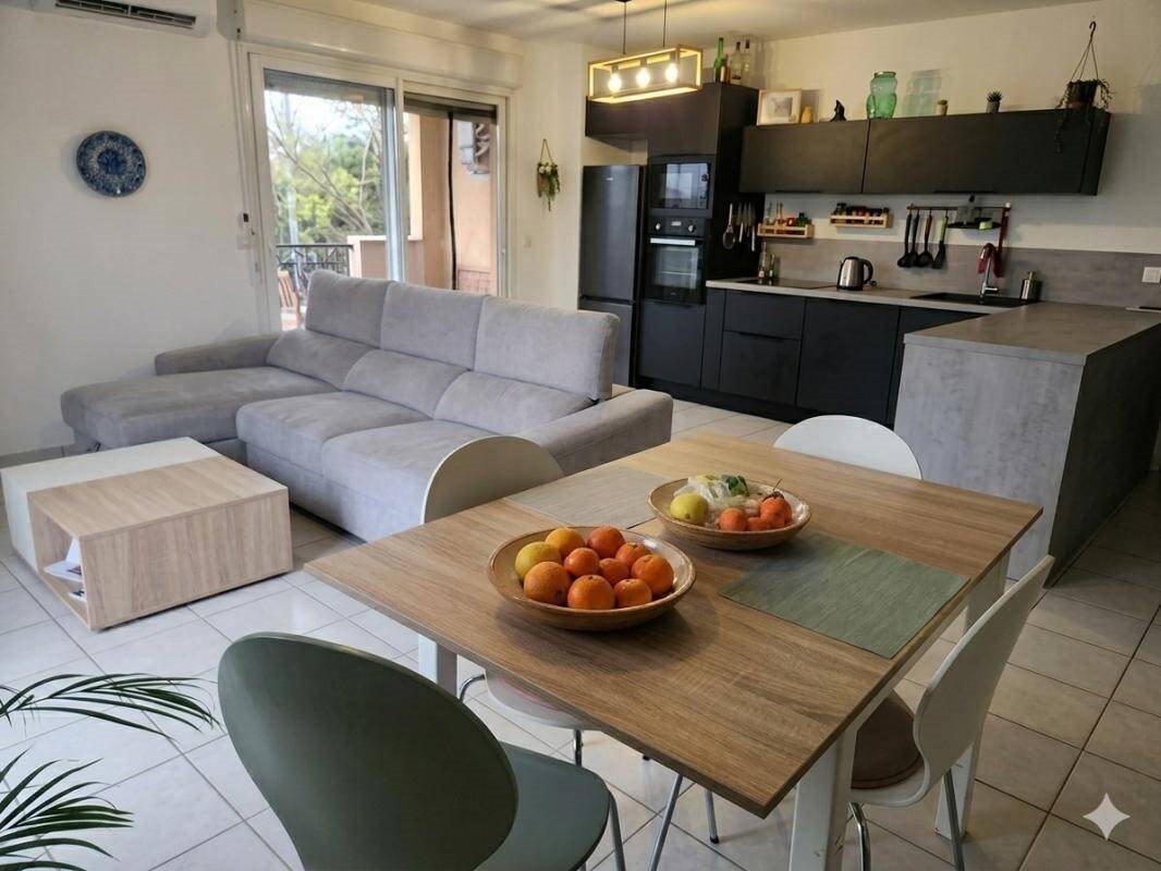 Idéalement situé sur les hauteurs de Vidauban, au sein d'une résidence fermée et sécurisée, cet appartement offre un cadre de vie calme et lumineux. Location non-meublée. Il se compose d'une entrée desservant un séjour avec cuisine ouverte aménagée et équipée, deux chambres avec placards et climatisation, une salle de bains et un Wc séparé. L'appartement dispose également d'un balcon, d'une cave et de deux places de parking couvertes.