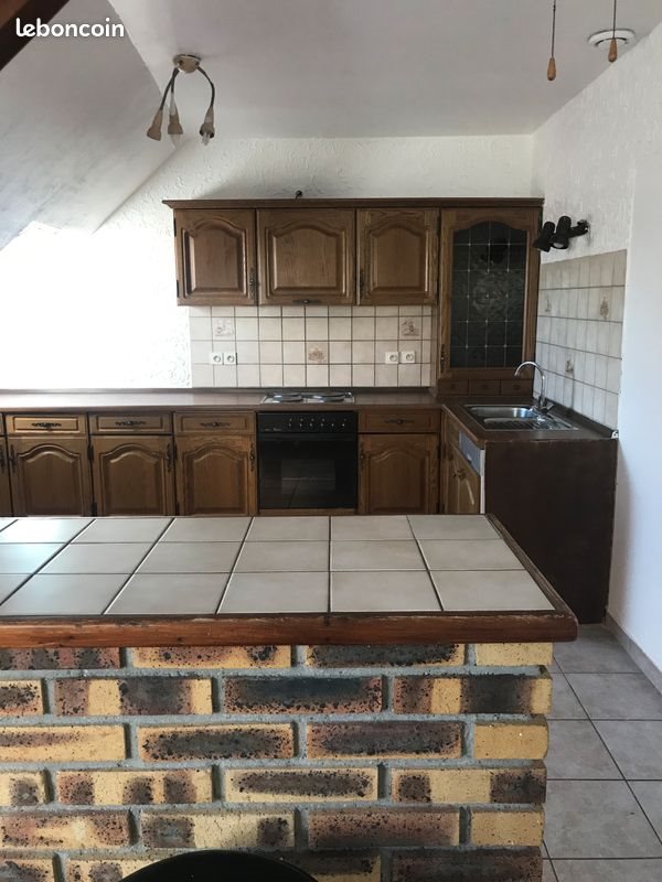 A louer Francaltroff appartement F4 mansardé. 3 chambres salle de bain avec douche, cuisine équipée avec four, plaque électrique, lave vaisselle, frigo, rangements... Convecteurs électriques récents - isolation extérieure de l'immeuble.