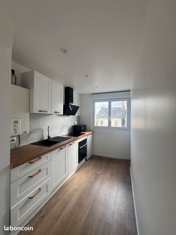 À louer appartement T3 situé au 4ᵉ étage d’une résidence calme, proche du centre-ville de Guéret. Logement lumineux avec balcon et vue sur le centre-ville. Description du logement : - Salon avec balcon - Cuisine équipée (plaque induction, four, hotte frigo/congélateur) - 2 chambres - Salle de bain - Wc séparés Chauffage et eau chaude au gaz de ville. Logement non meublé. Surface totale : environ 58 m² Loyer : 650 € / mois Dépôt de garantie : 620 € Les abonnements (électricité, gaz) restent à la charge du locataire. Documents demandés avant visite : 3 dernières fiches de paie 3 dernières quittances de loyers Dernier avis d’imposition Photos supplémentaires sur demande.
