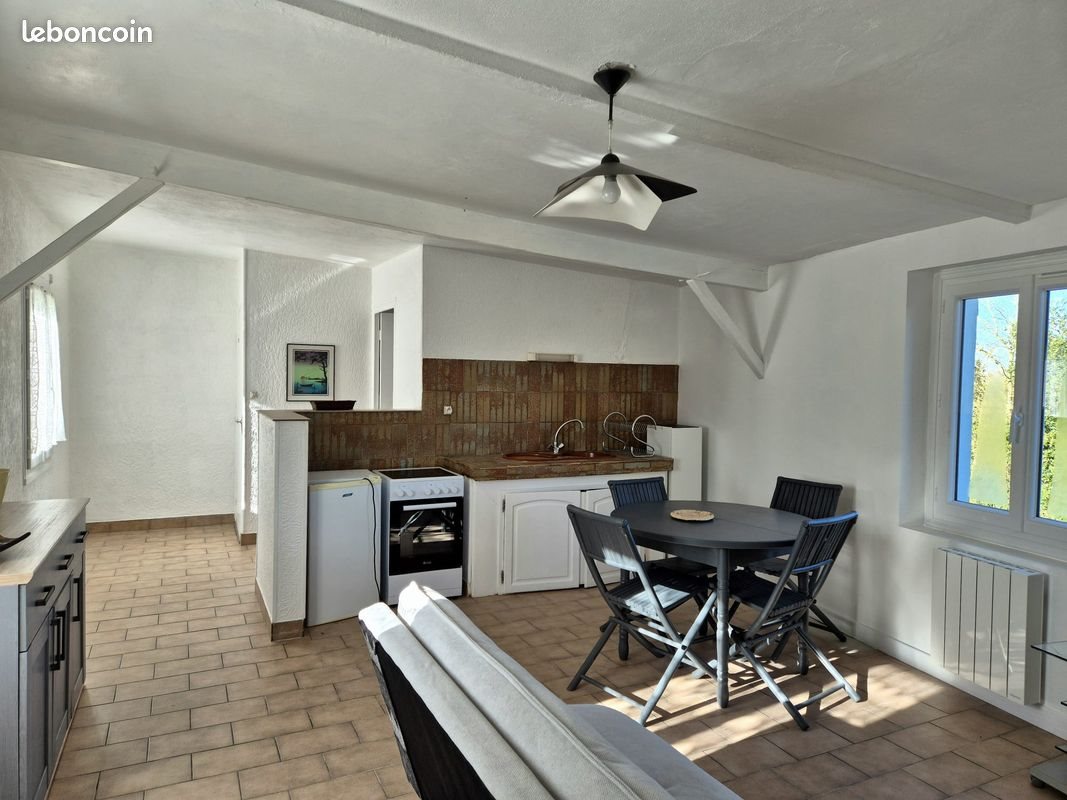Appartement meublé vient juste d'être refait à neuf. Entrée avec rangements 1 chambre avec dressing Cuisine ouverte sur salon avec canapé lit neuf cuisinière électrique neuve 1 salle de bain avec lave linge neuf Stationnement dans cours privative Jardin et terrasse commune Loyer 600 euros mensuel