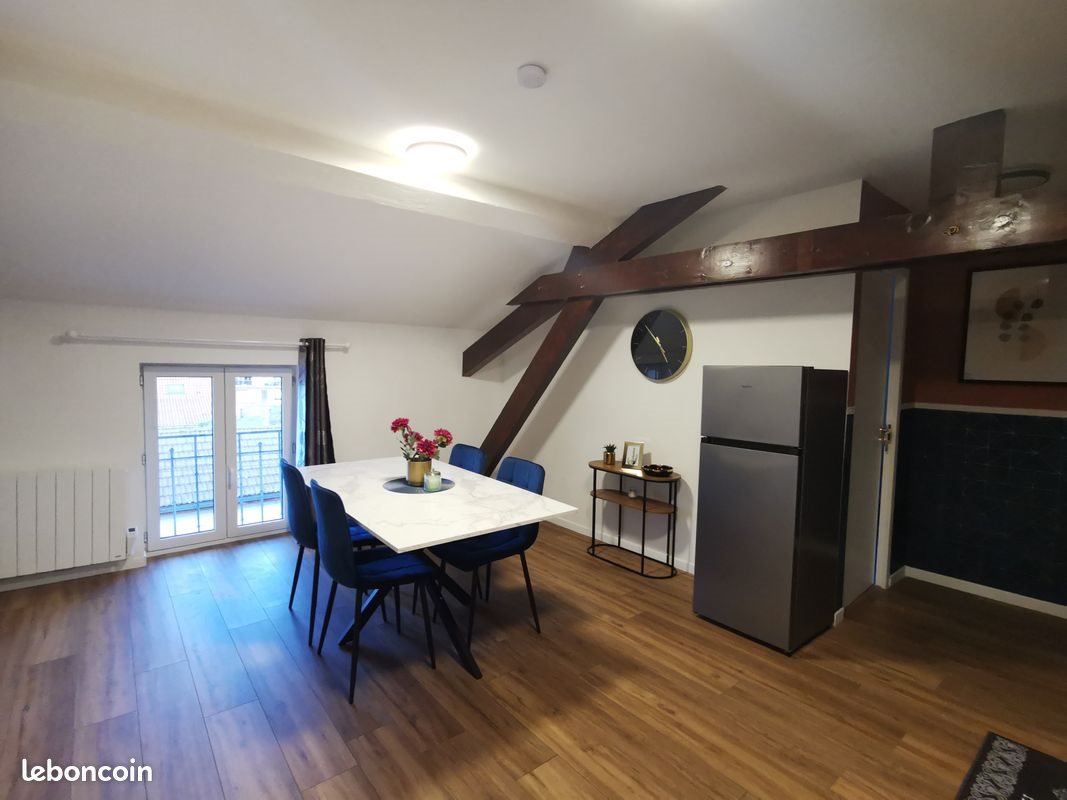 À louer, bel appartement rénové et meublé de 46 m², idéalement situé à Oyonnax, à proximité immédiate des commerces et commodités. Situé au 2ᵉ étage d’un immeuble calme sans ascenseur, cet appartement bénéficie d’une belle luminosité grâce à son exposition Nord-Sud, offrant un cadre de vie agréable et fonctionnel. ✨ Description du logement Surface : 46 m² Grande salle à manger lumineuse de 18 m² avec cuisine ouverte entièrement équipée 1 chambre confortable 1 salon séparé Salle d’eau moderne et bien agencée Chauffage individuel électrique par radiateurs Place de parking incluse ? Les plus Appartement rénové Meublé et prêt à habiter Quartier proche des commodités Immeuble calme ? Conditions de location Loyer : 679 € / mois charges comprises Dépôt de garantie : 2 mois de loyer Disponibilité : immédiate ? Contact par message pour plus d’informations ou pour organiser une visite.