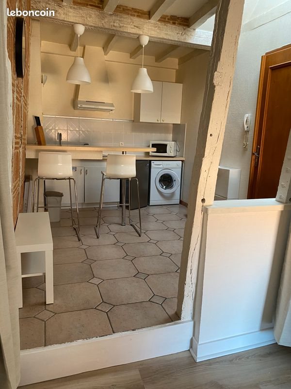 Beau studio, centre ville de Bergerac. Deuxième étage Nord d'un immeuble ancien. Cuisine équipée , vaisselle ,machine à laver le linge , micro ondes , plaques électriques Deux fauteuils ,lit en 90 ,armoire , petites tables . Salle de bains , baignoire , lavabo , toilettes. Eau et Electricité à votre charge .Compteurs personnels. Références exigées , Bulletins de salaire. Caution parent pour étudiant