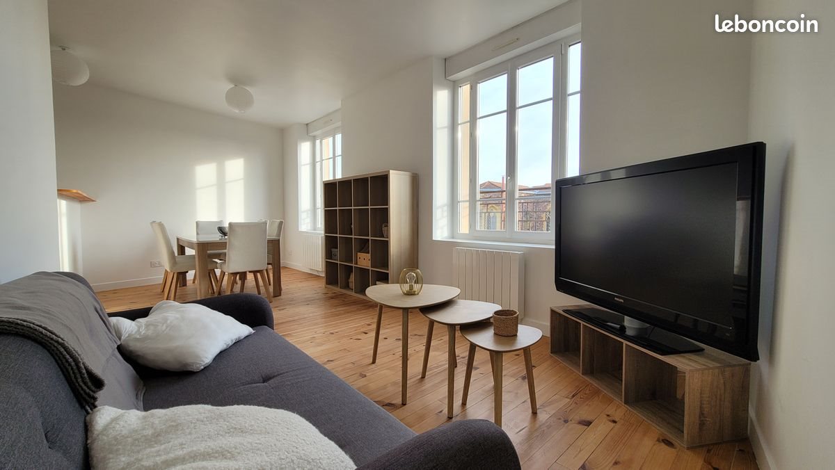 Charmant T3 meublé, rénové et lumineux, en plein cœur de Roanne. Idéalement situé, à deux pas de toutes les commodités, ce bien récemment rénové vous propose un cadre de vie agréable. Dans une petite copropriété, situé au 3ème étage, l'appartement offre une belle luminosité ainsi qu'une vue dégagée. Il se compose d'un hall d'entrée, d'un Wc séparé, de deux chambres avec placards et lit double, d'une salle de bain avec douche et lave linge, d'un grand séjour ouvert sur une cuisine entièrement équipée. Également une loggia avec placard pour plus de rangement. Loyer : 700€ Charges : 50€ Dépôt de garantie : 750€ Le logement est disponible début avril 2026, visite possible sur rendez-vous.