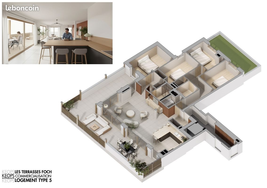 Appartement 3 pièces 130 m² Riorges - L'immobiliere 42 vous présente en Avant Premiere Et En Exclusivite, cet appartement type 5 d'une surface d'environ 130 m2 situé au 3ième et dernier étage avec vue à couper le souffle sur la Côte Roannaise d'une spacieuse terrasse privative de 59 m2, avec jolies dalles sur plots. Le bien offre une belle pièce de vie lumineuse d'environ 50 m2 avec une baie vitrée et Brise Soleil Orientable électique en aluminium, avec accès direct sur la terrasse, d'une cuisine américaine, de 3 chambres avec leur salle de bains et leur Wc, d'une suite parentale avec une salle d'eau privative, un dressing et un accès terrasse. Résidence sécurisée de standing réalisée par un architecte local ayant pignon sur rue avec des matériaux haut de gamme. Situé au coeur d'un parc avec des arbres centenaires, vous y trouverez un havre de paix. Pas de logements sociaux. Garage et cave en sous-sol disponibles. Situation idéale à proximité de toutes les commodités, transports, médecins Vous voulez conserver les avantages d'une maison sans les contraintes Contactez Sandrine pour découvrir cette opportunité unique. Surface : 130 m² Consommation énergie primaire : Non communiqué Consommation énergie finale : 0 kWh/m²/an