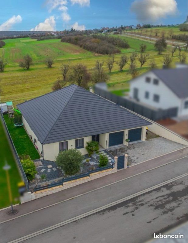 Maison contemporaine plain-pied – Piscine – Vue dégagée – Diebling À Diebling, dans un lotissement récent et calme, en bordure de champs, découvrez cette superbe maison moderne de plain-pied construite en 2018, offrant confort, luminosité et prestations de qualité. Elle se compose d’une entrée spacieuse, d’un bel espace de vie lumineux ouvert sur l’extérieur, d’une cuisine équipée avec cellier, d’un salon chaleureux avec cheminée traversante, d’un bureau et d’un Wc indépendant. La partie nuit comprend trois chambres, dont une suite parentale avec dressing, salle de bains (baignoire balnéo, douche à l’italienne, double vasque) et accès direct au jardin. Atouts supplémentaires : • Double garage • Buanderie • Combles en charpente traditionnelle entièrement aménageables À l’extérieur, vous profiterez d’un terrain clos et arboré, d’une grande terrasse avec store banne, d’une piscine avec abri et d’une vue dégagée sur les champs, sans vis-à-vis. Exposition ouest, idéale pour profiter du soleil jusqu’au soir. Confort & équipements : Chauffage au sol gaz – ballon thermodynamique – volets motorisés centralisés – domotique Somfy – moustiquaires – Rj45 – adoucisseur d’eau – alarme – interphone – isolation extérieure. Surface habitable : 143 m² Dpe : C (105) – Ges : C (14) Diagnostic réalisé le . Maison clé en main, moderne et fonctionnelle, dans un environnement privilégié. ?Les visites seront réservées aux personnes ayant un accord de principe de la banque en mains Aucunes visite Ne Sera réalisée sans documents prouvant l’accord de principes de la banque Merci de votre compréhension. Pas D’Agence !
