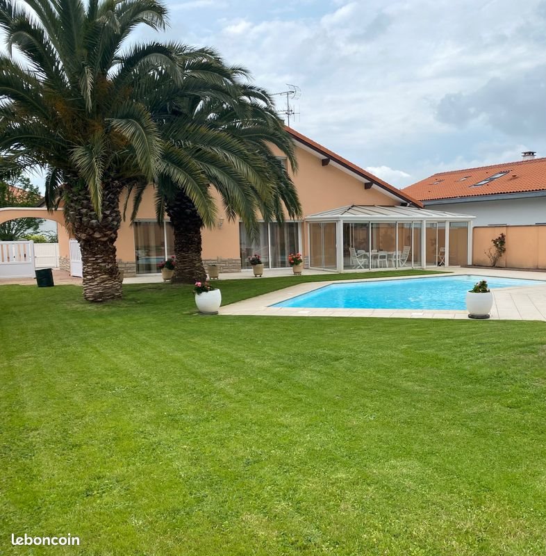 Maison avec garage 2 places, abri piscine, piscine, véranda, petit atelier, 3 chambres, 3 wc, 1 salle d'eau, 1 salle de bain avec baignoire, cuisine équipée, mezanine, cave, jardin, cheminée dans le séjour, volets , portail et porte de garage électriques. Eau, Electricité, entretien maison, jardin et piscine a la charge du locataire.
