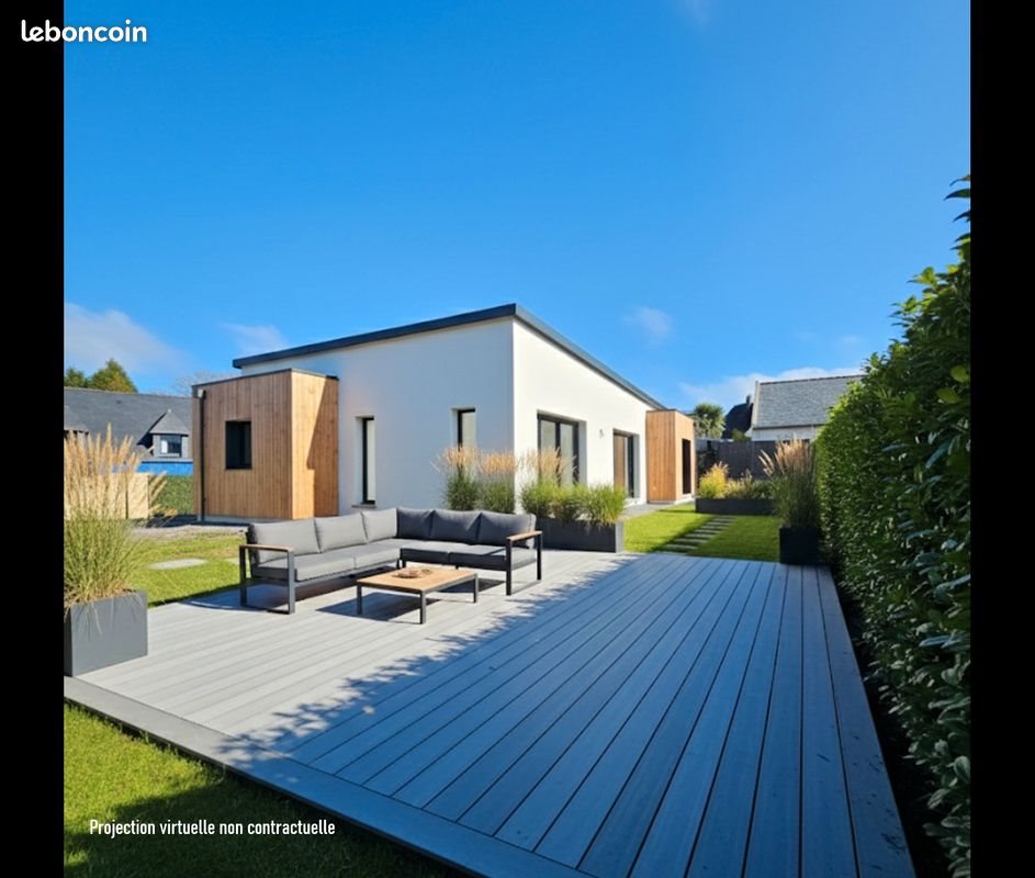 Maison neuve de plain-pied – Prestations haut de gamme – Ploemeur Maison neuve de plain-pied de 112,83 m² habitables, édifiée sur un terrain de 436 m², offrant un cadre de vie confortable, lumineux et économe en énergie. La maison s’organise autour d’une pièce de vie de 47 m², avec grand séjour et cuisine ouverte, largement ouverte sur l’extérieur et baignée de lumière. Elle dispose d’un espace parental comprenant douche à l’italienne et dressing, ainsi que de deux chambres avec placards, une salle de bains et deux toilettes. Construction aux prestations haut de gamme, conforme aux dernières normes thermiques Re 2020, garantissant performance énergétique et confort au quotidien. Situation idéale : • À proximité du centre de Ploemeur • Accès rapide à la route des plages et à la Rn 165 Vente en état futur d’achèvement (Vefa) ✔ Frais de notaire réduits ✔ Garantie dommages-ouvrage ? Livraison prévue : février 2026 Un bien rare, alliant plain-pied, modernité et emplacement recherché