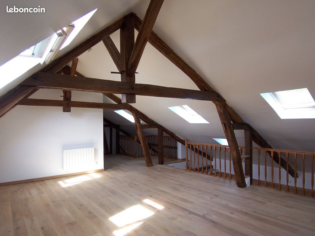 Situé dans une maison de 3 logements, on accède par un porche (ou l'on peut déposer une moto, mais pas de voiture), au premier étage à un palier désservant 2 logements. On entre dans une cuisine de 14 [Url masquée pour votre sécurité] la un escalier (assez raide-Ne convient pas à personne à mobilité réduite) vous mène d'abord au wc et la salle de bain (douche+baignoire, 7 m2) puis à une grande pièce de 40 m2 + sous-pente. Chauffage électrique. La fibre est installée. Les compteurs eau et électricité sont à votre nom. Les visites seront faites par le locataire en place sur le départ. Un arrangement est possible sur la date de disponibilité.