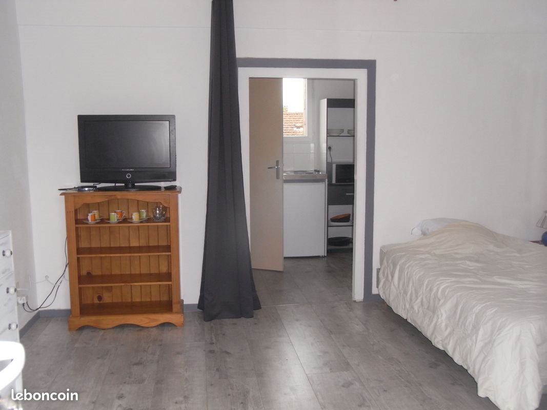 Appartement type F1, meublé au 1 er étage, chauffage électrique, comprenant : - Cuisine (Plaque cuisson, évier, meuble, frigo, micro onde, chaises, table, vaisselle) - Pièce principale (lit, Tv, meuble Tv, armoire) - Salle de bain avec douche et Wc Loyer Cc : 370€ dont 25€ charges locatives (pour la consommation d'eau personnelle et électricité des communs) Depot Garantie : 345€ Frais Agence : 165.60€ Montant estimé des dépenses annuelles d'énergie pour un usage standard : entre 370€ et 540€ par an indexées aux années 2021, 2022 et 2023 (abonnements compris). Consommation en énergie finale du logement, rapportée à la surface habitable : 85 kWh/m²/an