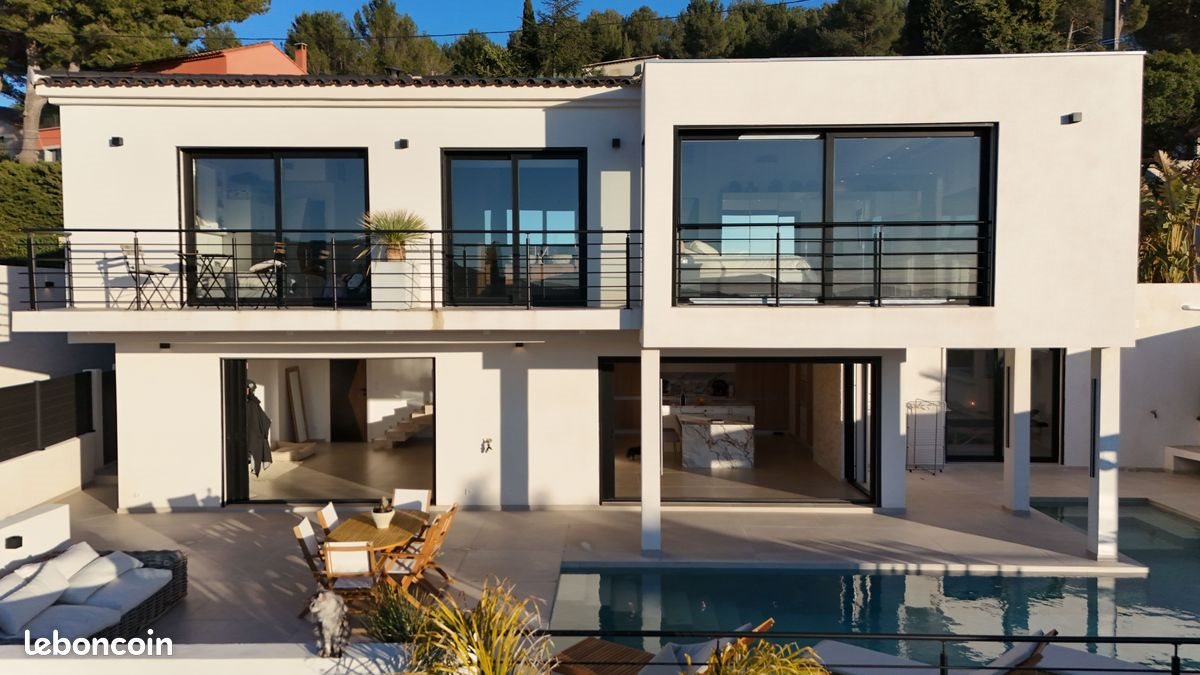 Très belle maison d’architecte – Secteur prisé du logis neuf Dans un environnement pavillonnaire entre le village d’Allauch et le logis neuf, baignée de lumière, cette maison individuelle contemporaine marie confort moderne et quiétude. Idéalement exposée à l’ouest, elle profite d’un ensoleillement généreux tout au long de la journée et d’une vue exceptionnelle. Édifié sur un terrain clos de 800 m², ce bien, datant de 2025 de type T4 et de 175m² habitable offre une atmosphère accueillante avec des prestations haut de gamme. Au rez-de-chaussée vous trouverez une très belle pièce à vivre, d’environ 65 m², avec sa cuisine moderne. Elle se prolonge naturellement, grâce à ses baies vitrées à galandages vers une terrasse conviviale, idéalement ensoleillée et une piscine. Une ravissante chambre, de près de 19 m², avec sa salle d’eau, deux dressing et ayant un accès direct vers l’extérieur complète le rez de chaussée. Vous y trouverez également sur ce niveau un wc indépendant et une buanderie. À l’étage vous profiterez d’une suite parentale de 48m², composée d‘un espace nuit de 29m² avec une belle hauteur sous plafond, une vue panoramique et une terrasse, d’une salle de bain de 13m² avec baignoire balnéo, douche et meuble double vasque et d'un dressing. Une seconde chambre de 33m² avec sa salle d’eau indépendante complète le palier. Cette chambre profite de la même vue et également d’une terrasse. Un wc et un accès direct vers l’extérieur parachève l’étage. L’Extérieur avec son espace bar, sa terrasse de 60m² environ, dont une partie ombragée, entourant la piscine chauffée, sa vue dégagée invite à la détente. Cet espace se présente comme une extension de la pièce à vire et est parfait pour recevoir. Vous trouverez aussi un agréable jardin arboré en contre bas. Une dépendance de 50m² environ complète ce bien rare à la vente. Avec son jardin indépendant elle peut devenir un studio, un bureau, etc... Cet espace étant à finir vous pourrez exploiter à votre guise. La possibilité de stationner plusieurs véhicules à l’intérieur ajoutent au confort. Prestations : chauffage et climatisation par pompe à chaleur, alarme, maison non mitoyenne en très bon état d’entretien. Matériaux de qualités et prestations hauts de gamme. Répondant à la norme énergétique Rt2012 la maison offre un confort de vie à moindre coût. La construction étant achevée en 2025 vous profitez encore des garanties biennales et décennales. La maison est vendue entièrement meublée et équipée. Situé dans un cadre de vie recherché avec à proximité des écoles, commerces, transports et services, tout en préservant tranquillité et sérénité. Taxe foncière : non significative car établie avant l’achèvement de la maison. Les informations sur les risques auxquels ce bien est exposé sont disponibles sur le site « géorisques »