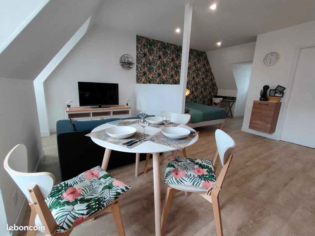 Particulier loue appartement refait à neuf de 34m² situé au 8 rue Notre Dame à Lesneven. Immeuble en Dalle béton, en hyper centre avec tous les commerces de proxmimité Situé au 2ème étage sur 2 dans une petite copropriété L'appartement est composé : - Une partie entrée avec rangement chaussures - Un espace nuit avec un lit double, un bureau et un dressing - Une cuisine aménagée et équipée (hotte, plaques, four, lave-vaisselle machine à laver, micro-ondes, réfrigérateur avec une partie congélateur) - Un espace salle à manger et salon avec Tv L'appartement est intégralement meublé et équipée Le chauffage est électrique. Disponible : 12 Janvier Loyer : 560€ Charges : 30€ Dépôt de garantie : 1120€ Plus de photos sur demandes Condition : Etre en Cdi et percevoir 3 fois le montant du loyer ou avoir un garant qui respecte cette condition