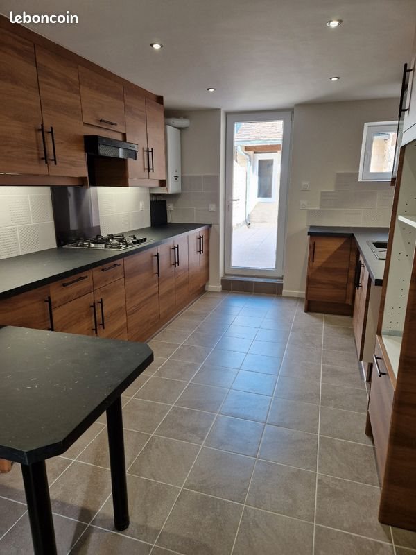 Maison de ville, 3 chambres, 1 salle de bain, 1 salle d'eau, 2 toilettes, cuisine aménagée 14m2, 1 salle à manger, 1 salon. Terrasse extérieure. Maison entièrement rénovée.