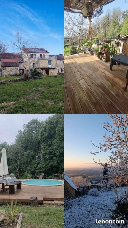 A vendre St André Allas proche Sarlat la Caneda Maison rénovée avec goût de 177 m2 comprenant : -En Rdc une entrée qui dessert séjour salon cuisine (avec son cantou) 56 m2 donnant sur une terrasse en bois . Au même niveau suite parentale avec chambre salle de jeux ou sport et salle de bain wc séparé. -A l'étage : Trois agréables chambres (dont une avec terrasse privée) salle d'eau et wc . Le tout bâti sur caves permettant du rangement . Accédant au terrain avec piscine et vue agréable vue sur la vallée.. Un garage bardage bois de 30m2 et une grange en pierre avec four à pain a restaurer viennent compléter ce bien . Les + : - double vitrage - poêle à granulés - Panneaux solaires - Clim réversible Un chemin de randonnée accèdant directement a l'école du village Taxe foncière :1060 euros