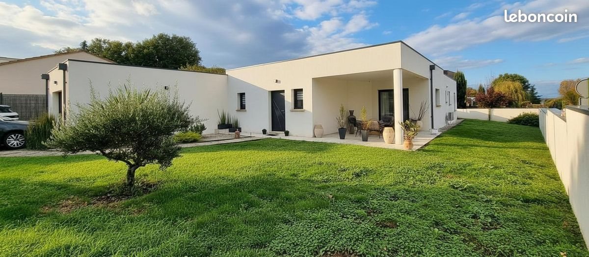 Maison contemporaine à toit plat de 2017 à Puymoyen Construite en 2017 par le constructeur Augier, cette maison contemporaine à toit plat de plain-pied, offre 126 m² de surface habitable sur une parcelle de 857 m² entièrement close et paysagée, dans le secteur recherché de la commune de Puymoyen. Elle se compose d'un grand séjour lumineux avec un système de climatisation réversible, d'environ 70 m² avec cuisine ouverte entièrement équipée (espace petit-déjeuner, cave à vins, plaques induction, lave-vaisselle, fours intégrés) et arrière-cuisine attenante. La partie nuit comprend trois chambres avec dressing, une salle d'eau moderne avec douche à l'italienne, baignoire balnéo, double vasque, sèche-serviettes et rangements, ainsi qu'un Wc séparé. Une buanderie complète l'ensemble. Un garage d'environ 60 m², équipé d'un portail automatique, offre la possibilité d'aménager une cuisine d'été. À l'extérieur, deux terrasses permettent de profiter du jardin : l'une est couverte, l'autre équipée d'un store banne. L'accès à la propriété s'effectue par un portail automatique installé en 2024. La maison bénéficie d'un emplacement privilégié, à proximité immédiate des commerces, écoles et transports. La gare Lgv d'Angoulême se trouve à moins de 10 minutes, facilitant les déplacements vers Bordeaux et Paris. Chauffage au sol avec chaudière au gaz - Chauffe-eau thermodynamique - Tout à l'égout - Fibre - Taxe foncière : 1607 € - Double vitrage - Volets roulants - Diagnostics à jour - Dpe A (47 kWh/m2/an) - Ges A (5 kg CO2/m2/an) - Estimation des coûts annuels d'énergie du logement entre 530 € et 790 € - Prix : 409000 € (honoraires d'agence inclus - 4,87 % Ttc à la charge de l'acquéreur) - Prix net vendeur : 390 000 € - Référence annonce : Snm 4923 - Contactez dès aujourd'hui, Madame Dominique Lavergne, 483 874 152 R.S.A.C. Angoulême, sur le [Coordonnées masquées] ou écrivez-lui sur [Coordonnées masquées] Les informations sur les risques auxquels ce bien est exposé sont disponibles sur le site Géorisques : Référence annonce : SNM 4923 ang Date de réalisation du diagnostic : Le prix indiqué comprend les honoraires à la charge de l'acheteur : 4,87% Ttc du prix du bien hors honoraires Prix hors honoraires : 390 000 € Montant estimé des dépenses annuelles d'énergie pour un usage standard : entre 530 € et 790 € par an. Prix moyens des énergies indexés sur l'année Non communiqué (abonnements compris)