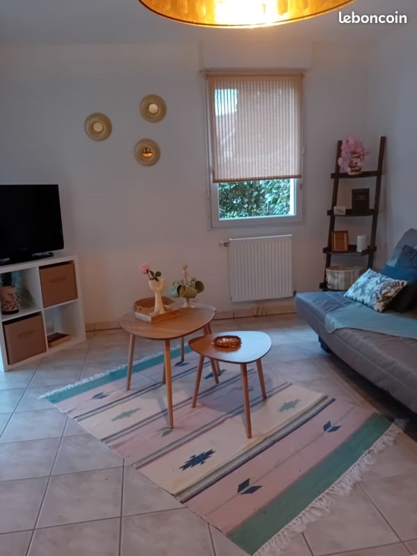Loue appartement entierement meublé F3 comprenant cuisine aménagée. La cuisine comprend lave vaisselle, frigo congélateur, four, micro-ondes, vaisselles etc.. Deux chambres avec literie. Une chambre parentale, une chambre avec 2 lits de 90,linges de maison fournis. Le salon et la salle à manger de 24 metres carré, décorés avec goût. Le tout au rez-de-chaussée avec jardinet et terrasse couverte dans résidence sécurisée, avec piscine et terrain de tennis. Place de parking et local pour vélo. Charges de copropriété 50 euros par mois.
